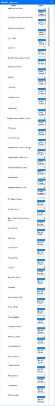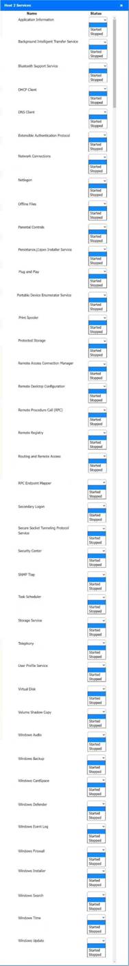 A. Host 2, Host 3, Host 4, Host 5 ,Host 6, Host 7, Host 8, Media Server - Stop All unwanted and malicious service (Persistance.j1zpxn Installer Service) from all the listed host and Media servers Refer screenshot below on the required service started/stopped on host2, same service to be started and stopped across all host servers.