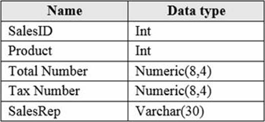 FactSales contains the columns shown in the following table.