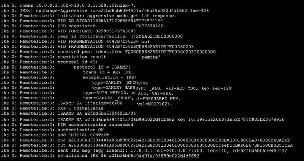 Exhibit. Refer to the exhibit, which contains partial output from an IKE real-time debug. Which two statements about this debug output are correct? (Choose two.)