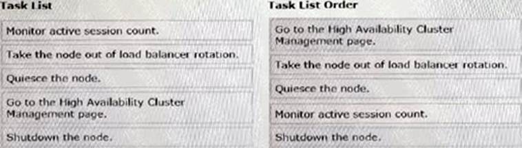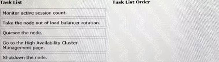 DRAG DROP BigCo is planning an update to JVM settings on all production nodes at the of the month. The production application supports high availability. To ensure that users can continue working without distribution while the JVM changes are in process, select and move all of the following tasks to the Task List Order column arrange then correct order.