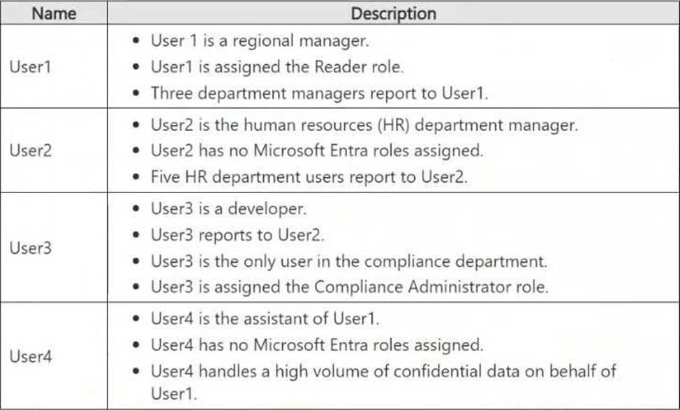 User4 (Assistant to User1, no Entra roles, handles confidential data on behalf of User1)