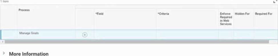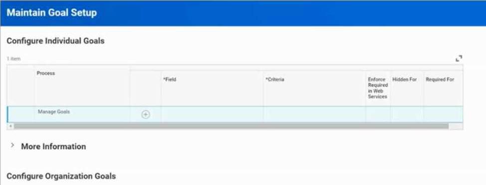 Refer to the following scenario to answer the question below. An enterprise creates organizational goals that include the following criteria: The organizational goals span five years. Workers can align their individual goals with the organizational goals. Workers must provide a description for each individual goal. Each individual goal must fall within one of three groupings. Workers' individual goals fall within one of three groups: Innovation, Financial, or Productivity. Where do you configure the groupings?